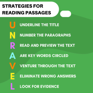 UNRAVEL, like TPQ12, tells the student to number before reading over the text and reminds the student to keep on track while writing. It helps the student ask themselves for clarification and steers them in the right track, so they can eliminate the wrong answers and look for evidence to support the right one.